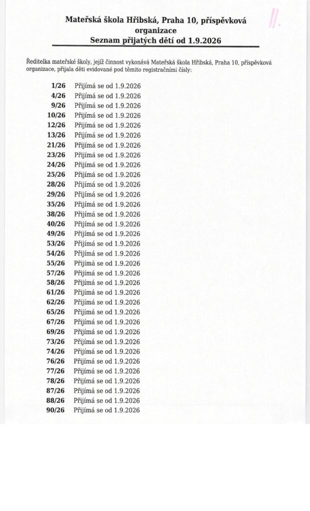 INFORMACE O TERMÍNU SCHŮZKY PRO NOVĚ PŘIJATÉ DĚTI:
